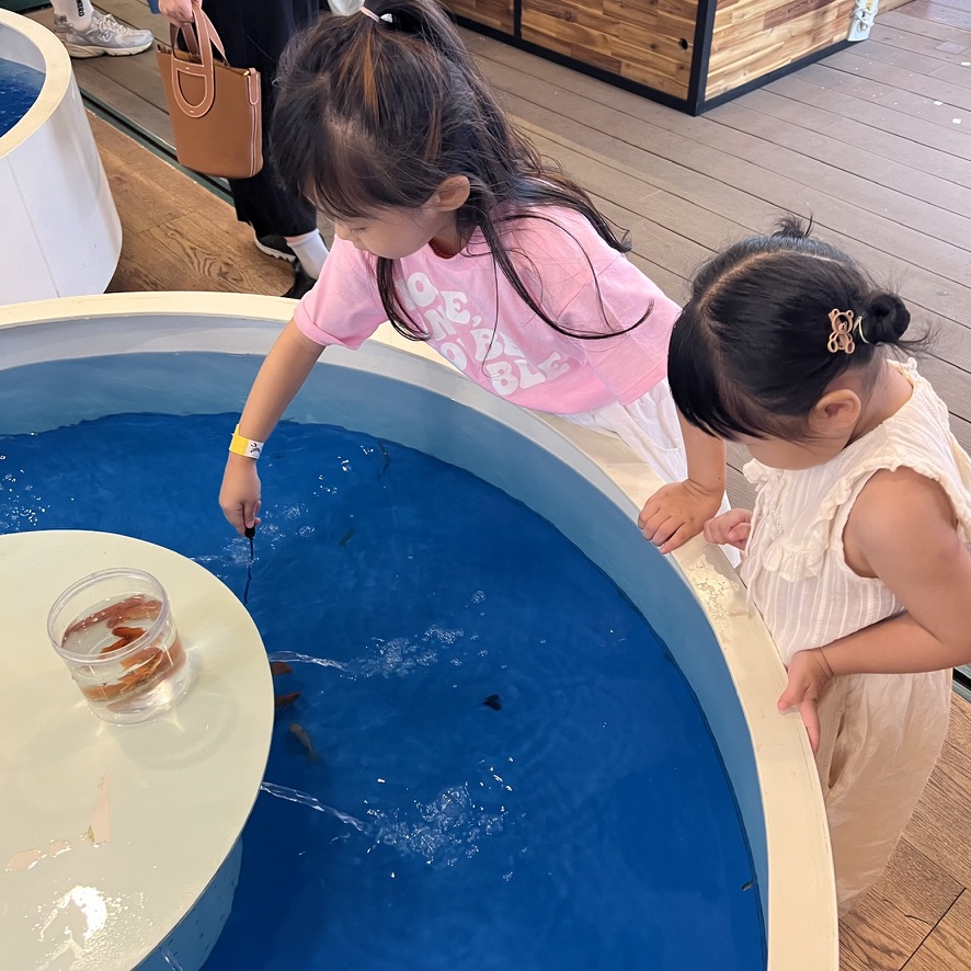 우리 애들은 금붕어 잡기에 집중하는 중입니다.